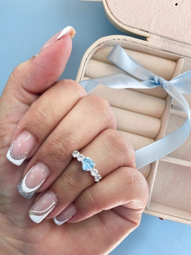 Anel Coração Azul Claro e Zircônias – Prata: Elegância e Brilho